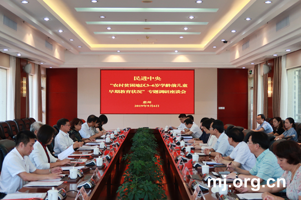 6日至8日,“民进中央农村贫困地区3-6岁学龄前儿童早期教育状况座谈会”先后在惠州市、河源市、清远市召开,民进中央妇女儿童委员会副主任刘志茹代表调研组介绍调研背景。会上,市教育、民政、财政、编办、人社、发改、妇联、自然资源等政府相关职能部门负责人及幼儿园、教师代表围绕调研课题分别介绍情况,与会同志结合乡村振兴和脱贫攻坚工作,就本地区3-6岁学龄前儿童早期教育现状、经费保障、师资情况、入园率、教育观念和存在困难等问题与调研组成员进行交流。