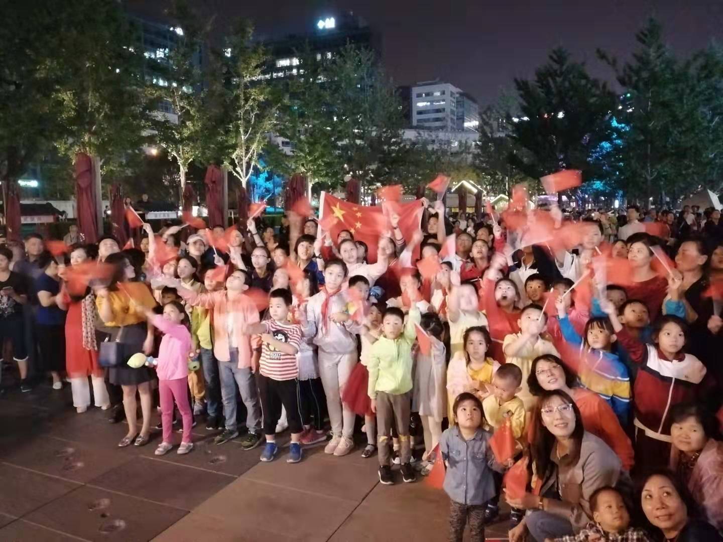 西城北京小学的老师和同学们、北京八中的老师和同学们、西城大妈、西城医护人员、西城社区百姓、西城环卫工人、西城人寿中心、西城公安干警……第四篇章为祖国庆生将当晚的光影盛宴推向最高潮,老少中青,各个年龄层,各个岗位的人们在此刻共同为祖国70年历程喝彩,为自己和祖国的未来鼓舞加油,此时此刻,他们也成为了光影盛宴的一部分,成为了祖国70周年生日庆典的一份子。绚丽的焰火此起彼伏的背景中,我爱你中国几个大字占满整个楼体,光辉夺目。