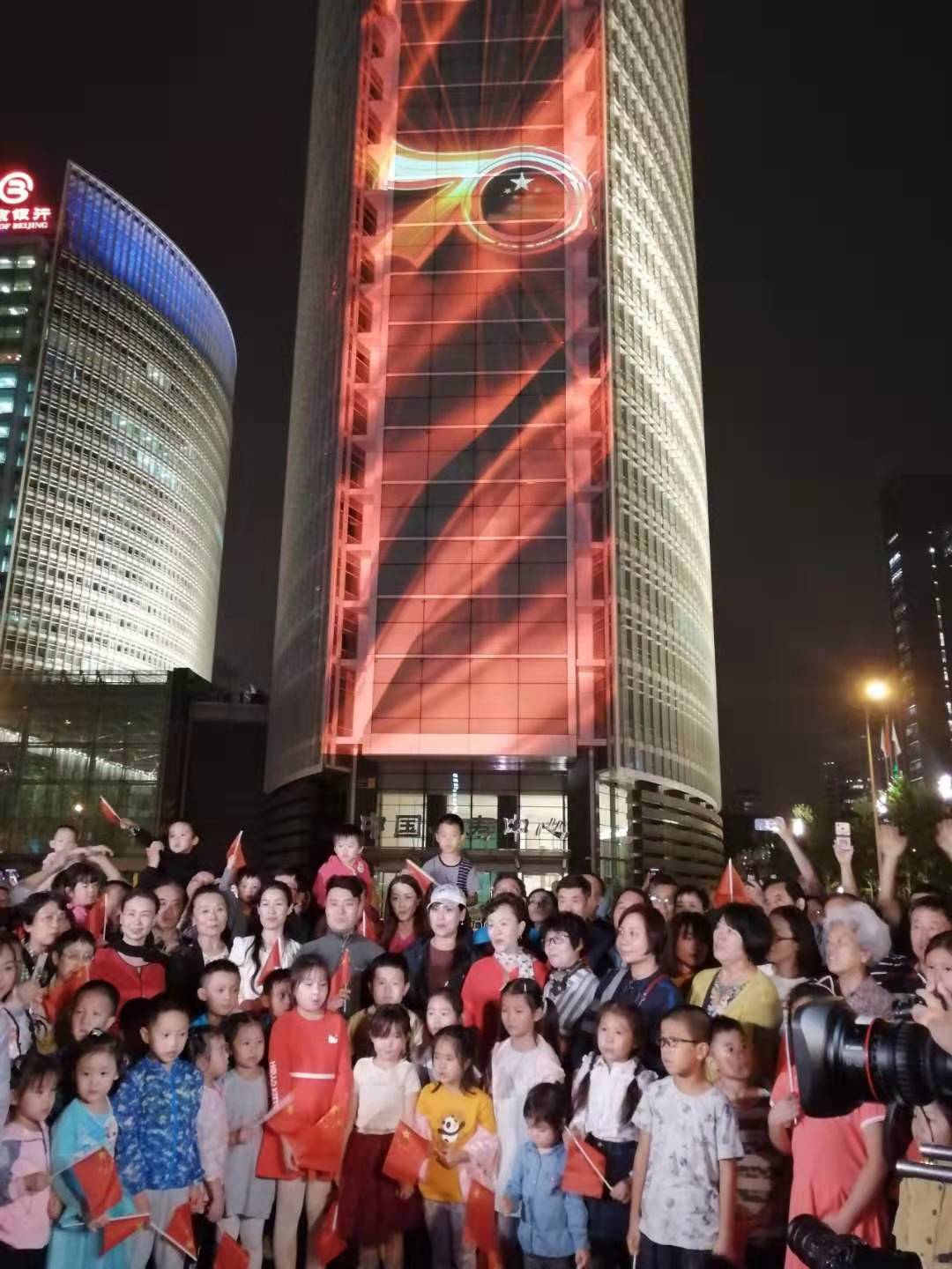 人民政协网北京9月12日电 月圆京城、婵宫秋趣、合家欢庆、情系中华、我和我的祖国、时代新奋进、山河岁月长、为祖国庆生……9月12日晚,一幅幅用百米巨幅激光投影展现对中秋佳节以及祖国生日祝福的画面正式亮相西城区金融街,当晚的金融街流光溢彩、灯光璀璨,金融街购物中心广场站满了前来观看这场高新科技打造的光影盛宴的观众。