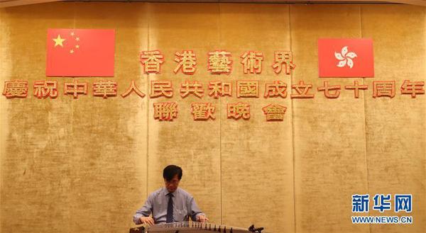 9月22日,演员在联欢晚会上演奏古筝。 当日,香港艺术界庆祝新中国成立70周年联欢晚会在香港举行。50多个艺术团体的600多名艺术界人士共同为祖国送上祝福。 新华社记者 卢烨 摄
