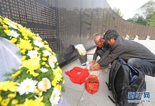 9月29日,许玉忠烈士家属为亲人带来家乡的黄土和特产。新华社记者 杨青 摄