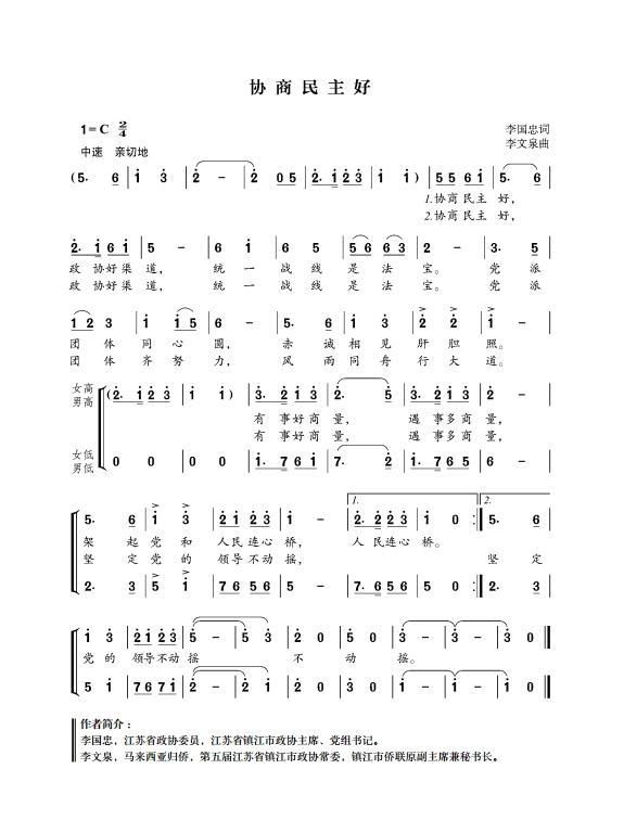 22. 不忘初心政协人 李如生词 卢劲松曲