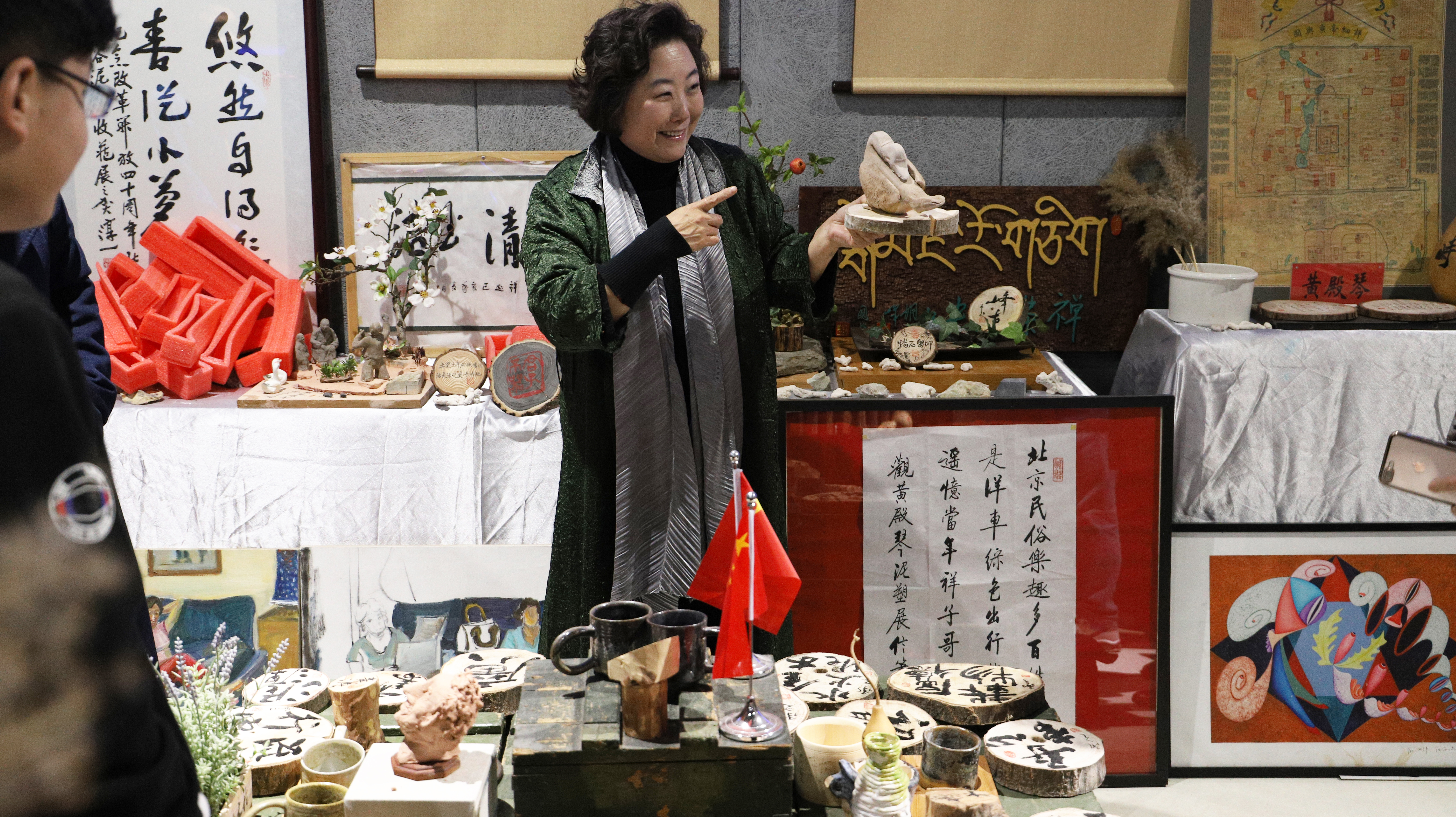 本次展览策展人、北京知联会秘书长黄殿琴向到场的嘉宾们讲述了这批展品背后的故事,“抬花轿”、“迈火盆”、“吹啦弹唱”等一件件作品引得所有人驻足连连,纷纷用手机拍摄记录着这批精品。