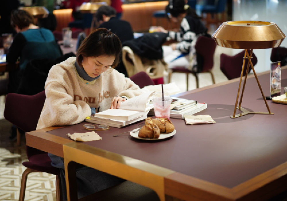 读者在西安一家书店内读书休闲 邵瑞 摄