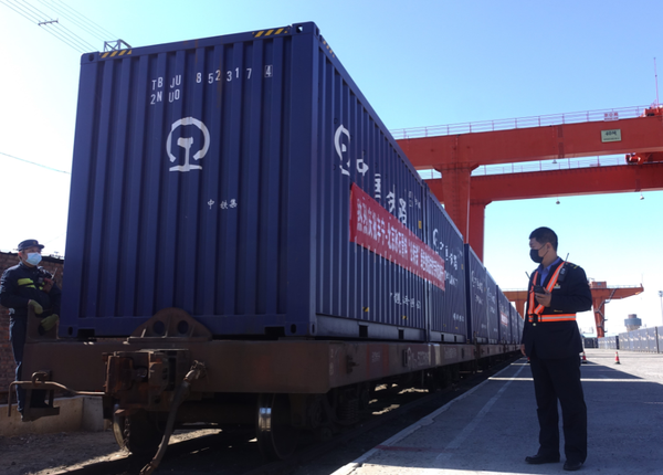 丰宁—北京砂石骨料“公转铁”专列今日正式开行。(北京铁路局供图 摄影 孙丽萍)