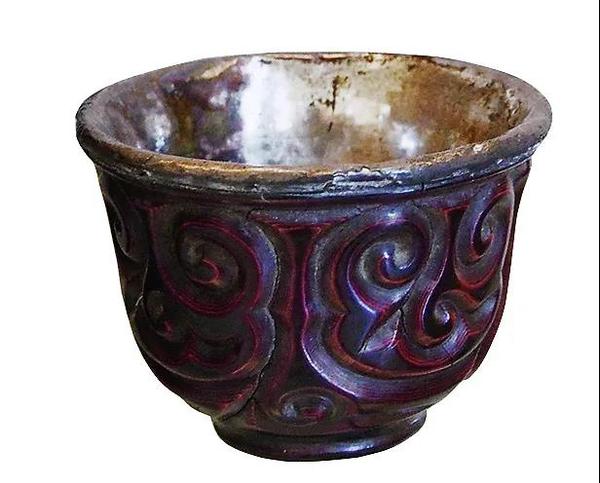 酒器的质地仍以陶瓷为多,此外则漆木、铜锡、金银、犀玉。明以前习用的碗盏加金银的办法,明代已很少采用。而宋代出现的剔犀银里碗盏,此际大为盛行,剔犀之外,也还有胡桃木、香木之类,如登录于《天水冰山录》的“金厢檀香酒一十二个”“金厢香木酒盃一十个”。今藏大英博物馆的两件剔犀银里杯,其一为高脚杯,其一即类于《词话》中说到的“银镶大钟”。金银酒器的使用明初尚有所限制,谈迁《枣林杂俎》智集“品官酒具”条曰:“一二品官酒器俱黄金,三品至五品银壶金盏,六品至九品俱银,馀人用瓷、漆、木器。按:太祖起兵间,习于节俭,又深惩贪墨,而定品官器具,不为寒乞,则所谓彬彬郁郁也。”不过豪奢风起,制度即成空文。明成化说唱词话《新刊全相说唱张文贵传》中的筵席便极见排场:“父母留儿留不住,安排打扮小官人。便在厅前排派筵会,十分管待广铺陈。东边挂起神仙画,西边挂起凤归林。黑漆卓子排定器,犀皮交椅两边分。金盏金台金托子,金匙金箸插金瓶。珍馐百味般般有,四时果子及时新。”虽非纪实之作,却与实际情况相去不远。明何良俊《四友斋丛说》卷三十四记述道,“尝访嘉兴一友人,见其家设客,用银水火炉、金滴嗉,是日客有二十余人,每客皆金台盘一副,是双螭虎大金杯,每副约有十五六两”;又洗面银盆,焚香金炉,“僭侈之极,几于不逊矣”。所谓“银水火炉”,即前引《世事通考·酒器类》中的“既济炉”,亦即水火合为一器的温酒之器,四川崇州万家镇明代瓷器窖藏中有锡制的水火炉。这里说到的“金滴嗉”,应即金素壶。由北京右安门外明万贵墓出土以及河南博物院藏螭虎双耳白玉杯,可以推知“双螭虎大金杯”式样之大略。既曰“金台盘一副”,那么当有与螭虎杯纹样一致或相与呼应的承盘,这是宋元时代流行的“教子升天”演变而来的传统样式。一席宾客二十余,人手一副金台盘,如此豪奢,《金瓶梅词话》里富甲清河一县的西门大官人也未能望其项背,不过此例却正是小说叙事的一个旁证。