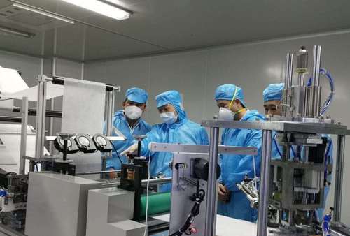 说干就干,赵文发立马组建研发团队,一边出资500多万元人民币用于购置设备、采购所需原材料,一边加紧培训生产员工、安装生产线。在设备生产厂家的帮助下,经过连续多日通宵安装调试,终于在2月25日,两条日产20万个N95口罩的全新自动化生产线在澳星公司建成投产。