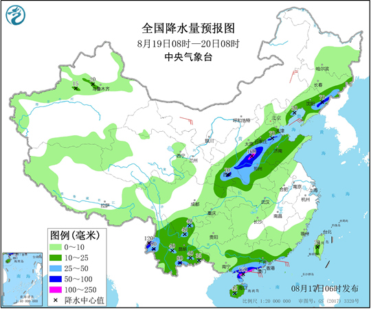 华南地区的降雨将在8月19日后逐渐开始。预计19日夜间至21日,广东西南部、广西南部和西部、海南岛北部和南部、云南南部等地将有大到暴雨,其中广东西南部、广西南部、云南南部等局地有大暴雨。