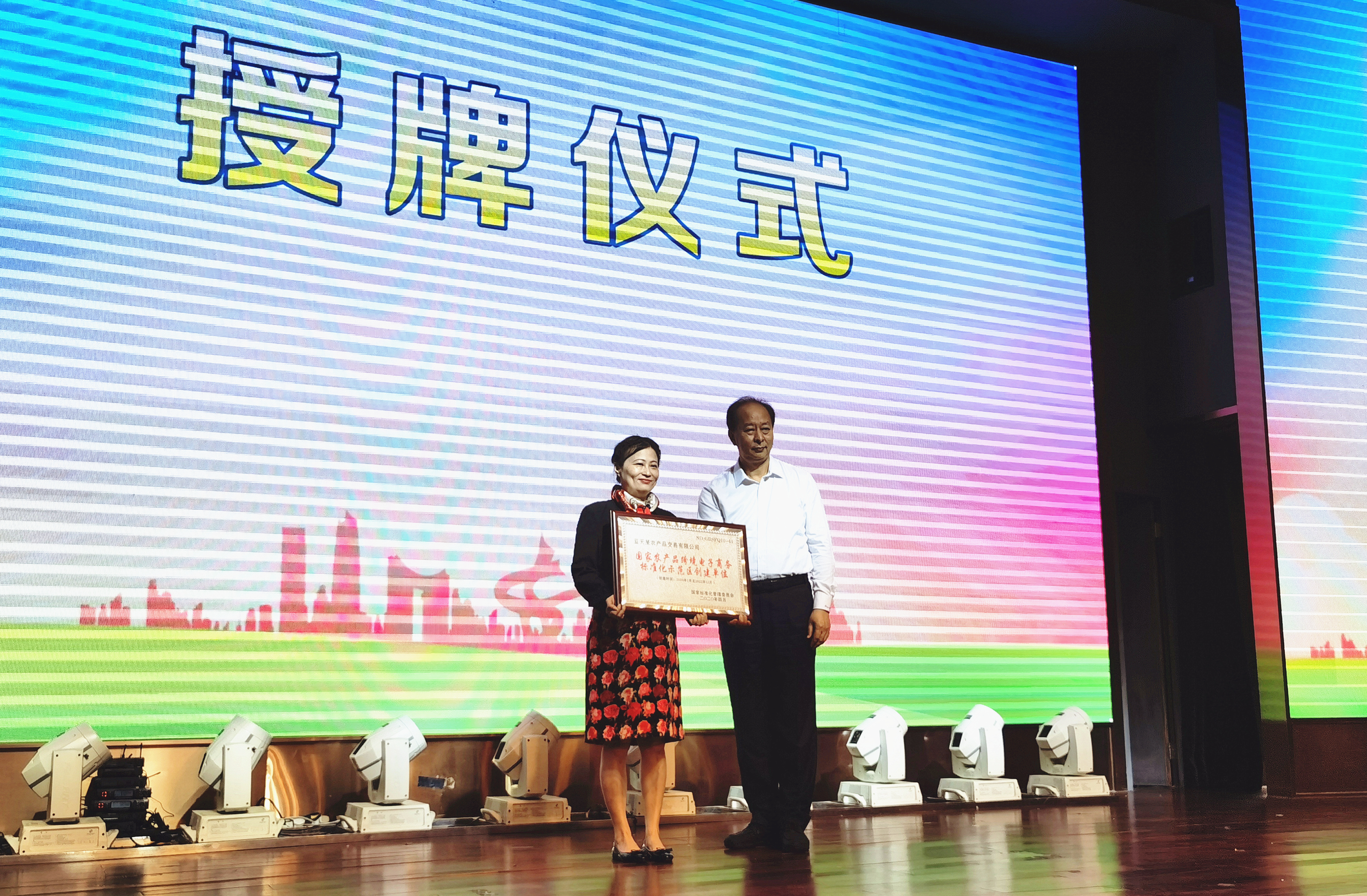 蓝天星农产品交易有限公司董事长蓝冰女士接受授牌