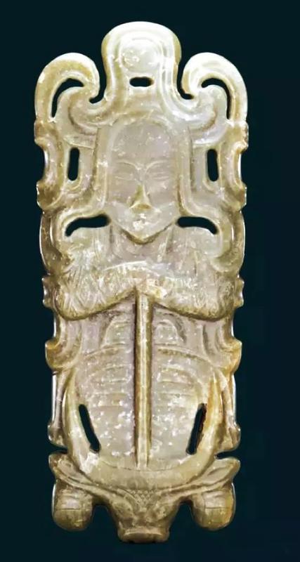 牛形象的神兽在这件红山文化高等级玉器中充当了沟通人间与上天的媒介物,这不禁使我们联想到了牛郎织女的神话传说,牛郎脚踩神牛献出的角,就能飞上天界,追赶织女。玉器中手握权杖的王者或领袖,通过踩在牛的角上驾驭神牛,亦能拥有神力直飞上天与天界沟通,完成普通氏族成员所不能完成的任务,显示出这件玉器应为一人独享的蕴含沟通天地人神的特殊功能。