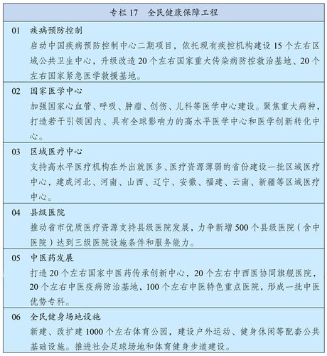 改革疾病预防控制体系,强化监测预警、风险评估、流行病学调查、检验检测、应急处置等职能。建立稳定的公共卫生事业投入机制,改善疾控基础条件,强化基层公共卫生体系。落实医疗机构公共卫生责任,创新医防协同机制。完善突发公共卫生事件监测预警处置机制,加强实验室检测网络建设,健全医疗救治、科技支撑、物资保障体系,提高应对突发公共卫生事件能力。建立分级分层分流的传染病救治网络,建立健全统一的国家公共卫生应急物资储备体系,大型公共建筑预设平疫结合改造接口。筑牢口岸防疫防线。加强公共卫生学院和人才队伍建设。完善公共卫生服务项目,扩大国家免疫规划,强化慢性病预防、早期筛查和综合干预。完善心理健康和精神卫生服务体系。