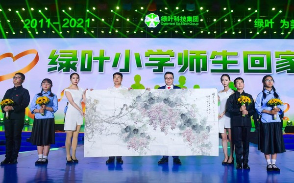 滨海县委教育工委书记、教育局党委书记、教育局体育局局长周青登台,代表滨海县教育系统17万师生,向绿叶多年来坚持捐资助学的爱心善举表示感谢,向绿叶科技集团10周年庆典表示祝贺。现场,周青书记与孩子们共同向绿叶赠送了一幅凝聚祝福、寓意美好的画卷。