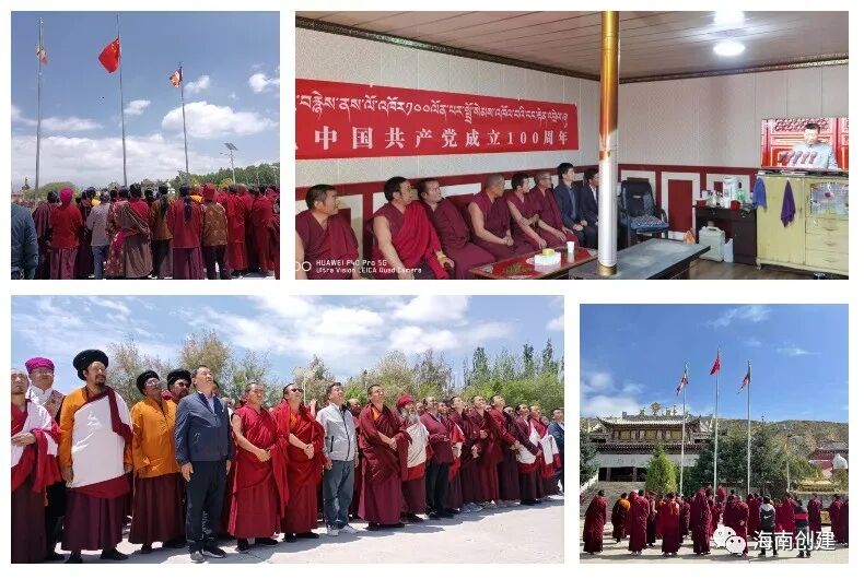 为热烈庆祝中国共产党百年华诞,海南州宗教界发扬爱党爱国爱教优良传统,7月1日上午8:00时,全州141座藏传佛教寺庙和71座清真寺民管会组织本寺宗教教职人员举行了庆祝中国共产党成立100周年升国旗仪式并准时收看了中国共产党成立100周年庆典直播。