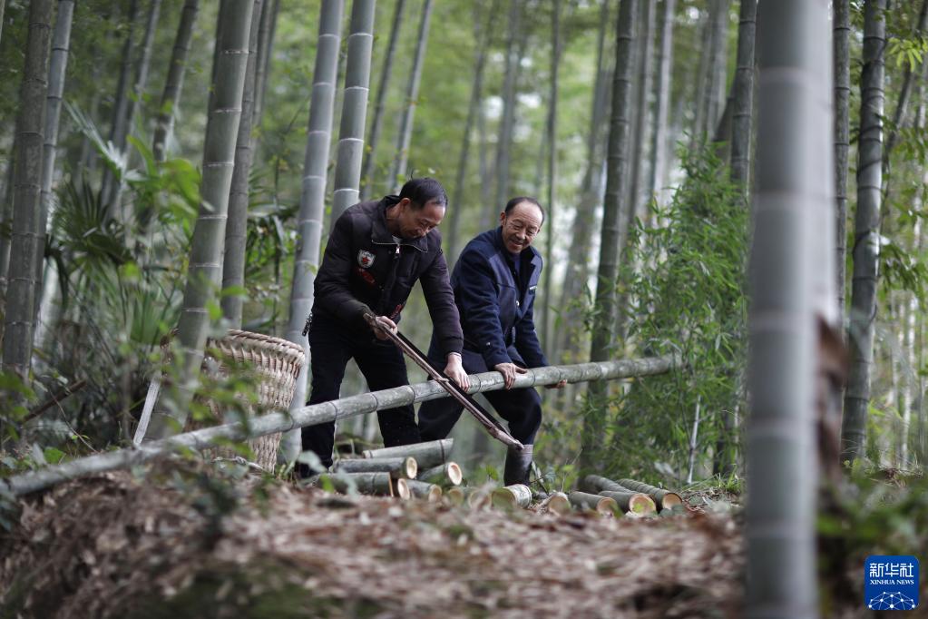 11月16日,在贵州省赤水市宝源乡回龙村,杨贵妃在挑选适合种酒的竹子。新华社发(杨洋 摄)