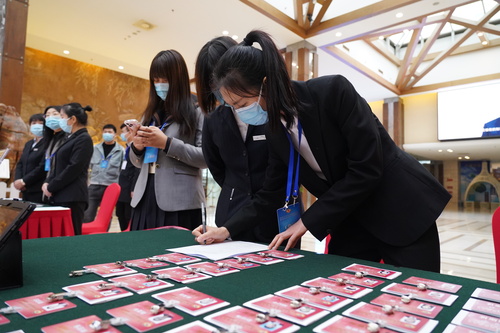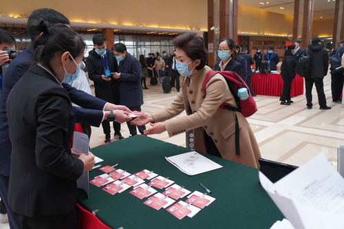 大会报到时间从上午10点开始,委员们依次提交个人健康情况承诺书,量体温,扫健康码,统一进行核酸检测等,报到期间过程有序、审核严密,疫情防控措施到位。所有参会政协委员严格遵守疫情防控常态化规定,自觉佩戴口罩,在工作人员的指引下办理报到手续、领取会议资料。