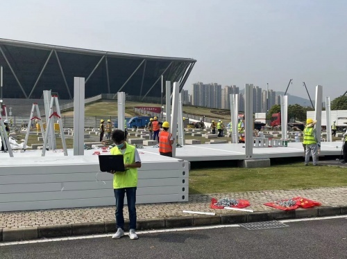 图:东莞寮步篮球中心方舱医院和隔离酒店在建现场