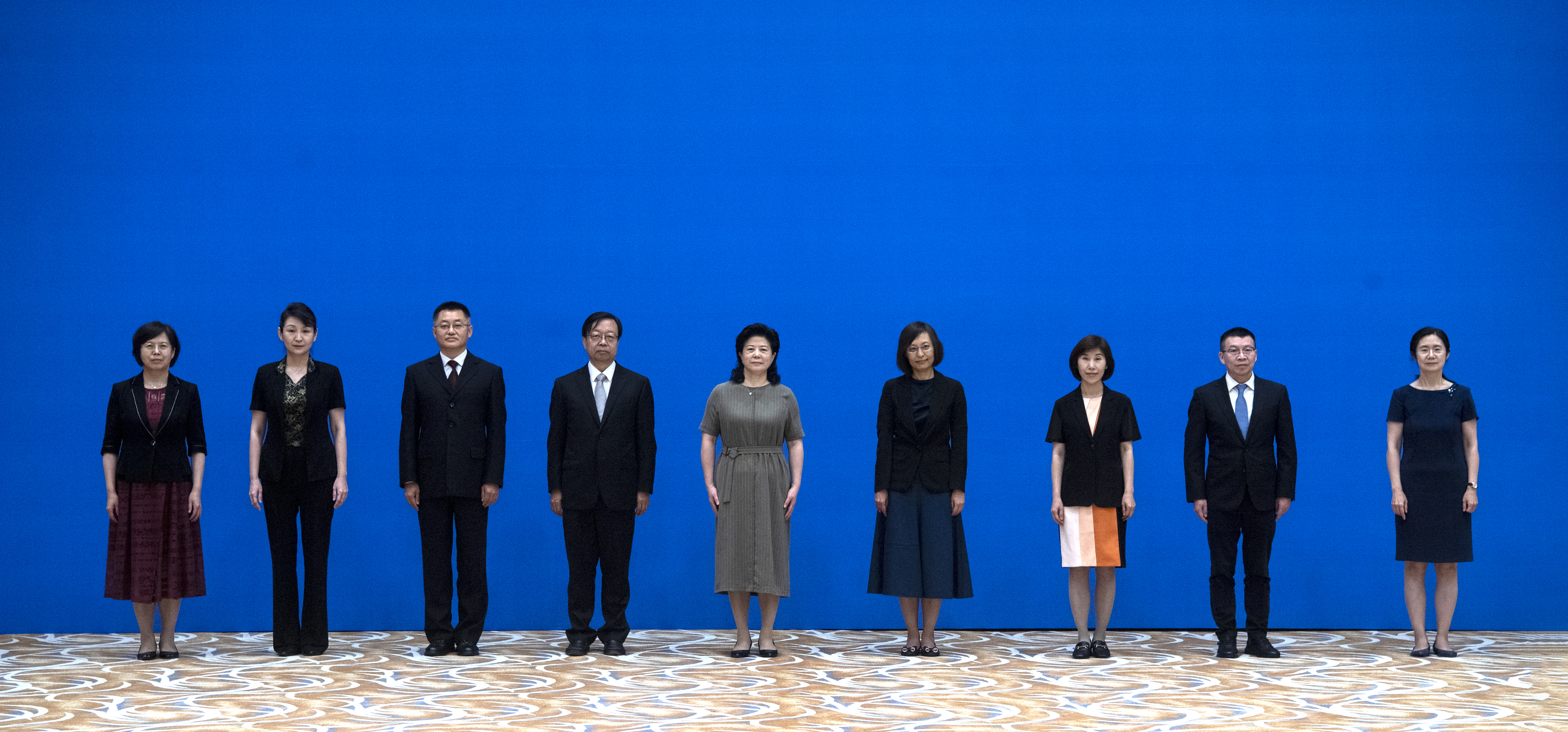 新一届民进北京市委领导班子成员合影。左起:苍玉清、廖奕、高崇耀、杨金龙、庞丽娟、李昕、林丽颖、龚六堂、王莉萍