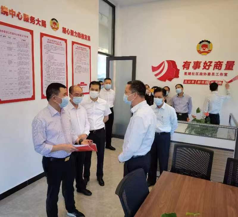 调研组还实地调研了端州区星湖社区“星湖同舟”社会治理共同体、星湖社区政协委员工作室等,详细了解了星湖社区党建工作的特色做法,并就政协委员如何积极履职参与基层治理提出意见建议。