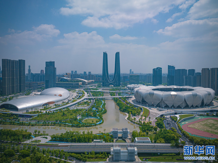 钱塘江畔,以“莲花碗”为代表的杭州亚运会体育场馆蓄势待发,迎四海宾客。