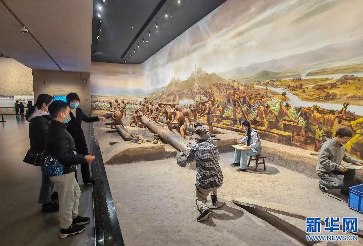 3月4日,游客在参观位于杭州余杭的良渚博物院。新华社记者 徐昱 摄