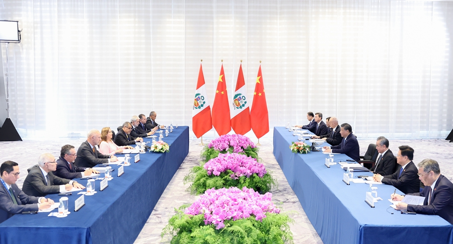 当地时间11月16日上午,国家主席习近平在旧金山会见秘鲁总统博鲁阿尔特。