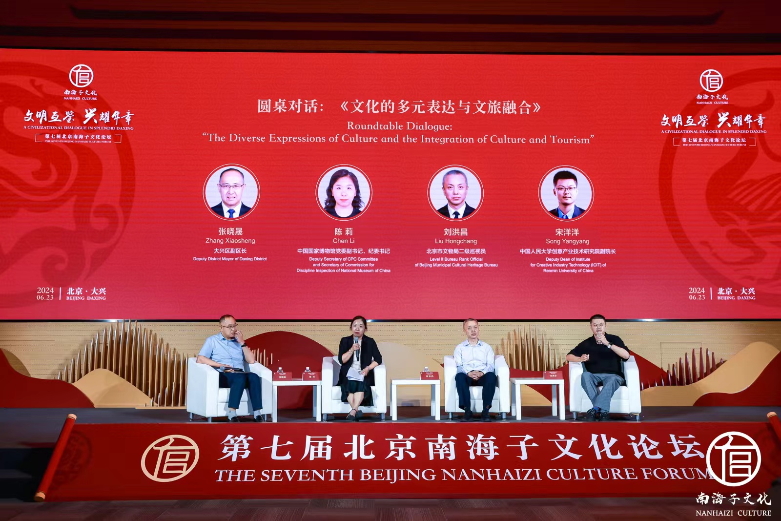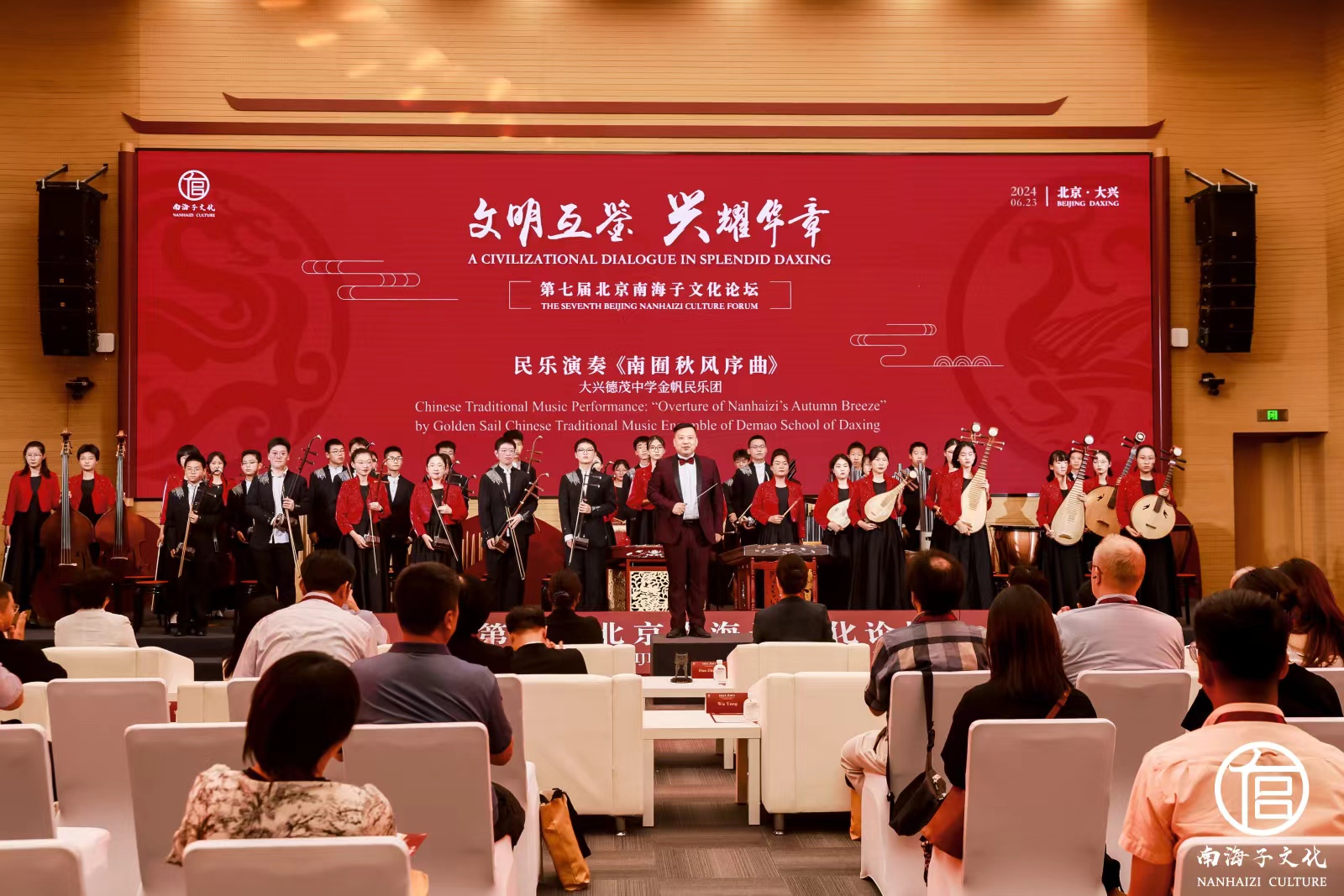 在6月23日举办的“文明互鉴•兴耀华章”第七届北京南海子文化论坛上,来自俄罗斯、法国、德国、意大利、西班牙等18个国家和地区专家学者和文化爱好者参与其中。他们到泓文博雅艺术馆与钧天坊古琴基地,观赏精美藏品,聆听中华古乐,体验榫卯拼插等传统非遗项目。无论是民乐《南囿秋风序曲》、京剧《南海子》选段,还是舞蹈杂技《肩上芭蕾》,大兴悠久的历史文化与现代科技融合之美,展露无遗。
