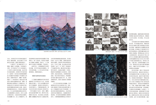 科技发展给艺术带来的不仅是表达手段上的突破,更有对传统艺术门类创作的重新思考。“作为方法的水墨”板块中,水墨作为中国传统绘画中最古老的媒介之一,当科技融入创作,焕发出新的创作面貌。盾乙的《2023,山水1号》将图像和AI绘画直接植入水墨中,揉合了带抽象意味的水拓和传统手绘方式,其命名更是带有强烈的工业信息化的意识。张望的纸本水墨作品《生成》,通过水墨表现科技元素,回应“人智时代”主题。十张极具符号化的人物形象组成了一幅长17米、高4.5米的巨幅画作,画中人物形象进行了“无脸化”处理,极具符号化的象征意义,暗示人类身份在人工智能时代可能面临的模糊性与异化感。作品中出现的机械装置、回路纹样和抽象构造,也隐喻着人类意识可能与科技融合的未来情境。水墨作为一种方法,为传统艺术当代性转化提供了更为广阔的思路,也充分展示了艺术家在艺术创造、创新方面的创造力。