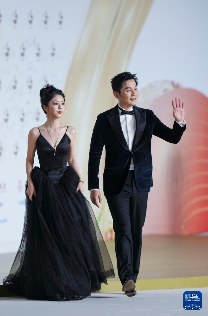 9月13日,演员佘诗曼(右)和张颂文走在第二届金熊猫盛典的“金熊猫大道”上。