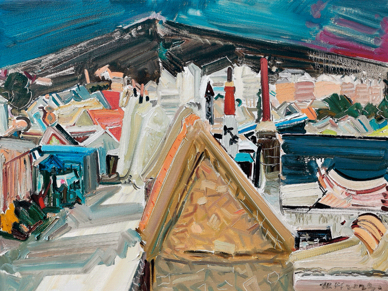 从凤凰美术馆看窗外(油画)60×80cm 2023年 /骆根兴
