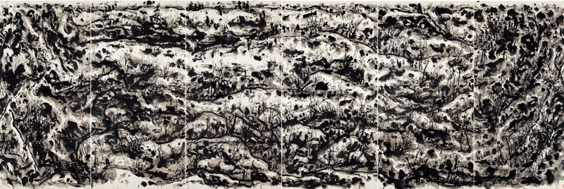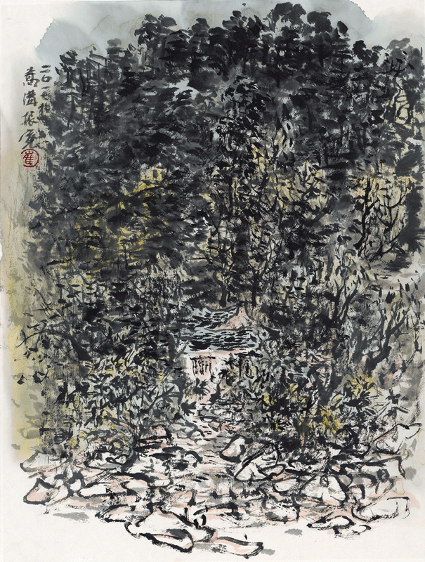 作品日益灵魂化的同时,作品的“历史化”特质也日渐呈现出来。何谓“历史化”?作品的笔墨探索与图像结构并非单纯地指向当下与未来,恰恰相反,它以人们意想不到的方式折返回历史,在源头重温山水本义——“以形媚道”。如此便产生了具有悖论性质的图景:实验性、前卫性的笔墨探索中,包裹着古老的山水命题。一如乔伊斯、艾略特返回远古的神话仪式,毕加索返回原始主义,康定斯基迷恋神智学,并在那里寻找创新性灵感一样。