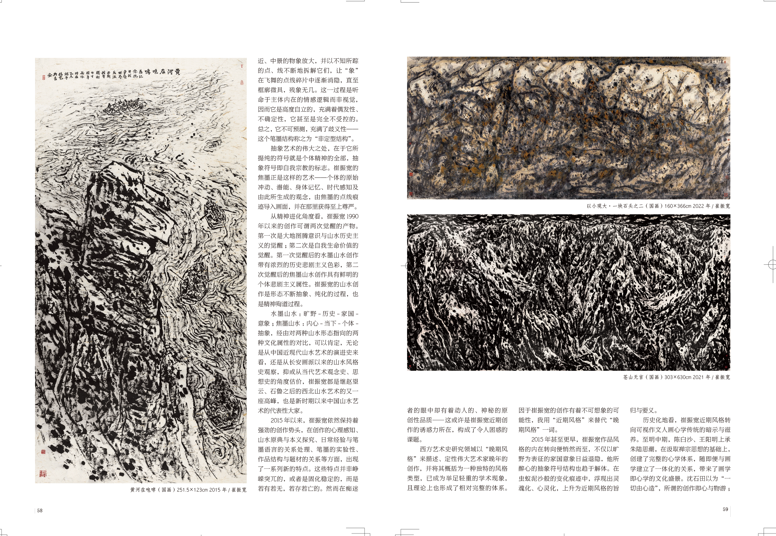 水墨山水:旷野-历史-家国-意象;焦墨山水:内心-当下-个体-抽象,经由对两种山水形态指向的两种文化属性的对比,可以肯定,无论是从中国近现代山水艺术的演进史来看,还是从长安画派以来的山水风格史观察,抑或从当代艺术观念史、思想史的角度估价,崔振宽都是继赵望云、石鲁之后的西北山水艺术的又一座高峰,也是新时期以来中国山水艺术的代表性大家。
