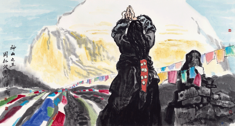 神山之王——冈仁波齐(国画)97×180cm 2025年 /李延声