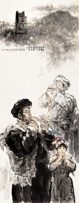 羌笛何须怨杨柳 春风吹生新汶川(国画)313×124cm 2011年 /李延声
