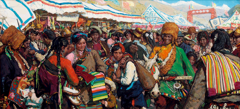 高原集市(油画)68×149cm 1981年 /潘世勋 中国美术馆藏