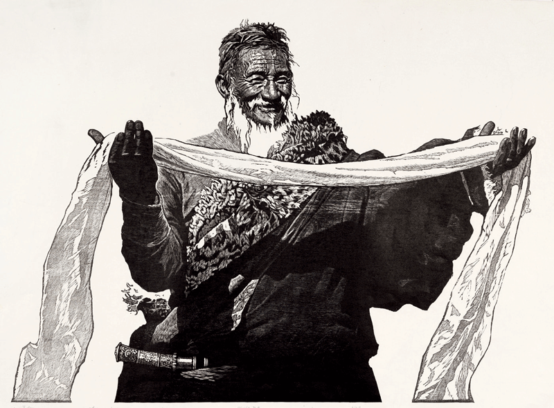 洁白的哈达(版画)63×86cm 1984年 /徐 匡 中国美术馆藏