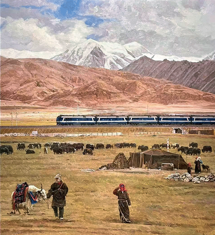 青藏铁路(油画)150×137cm 2009年 /白展望 中国美术馆藏