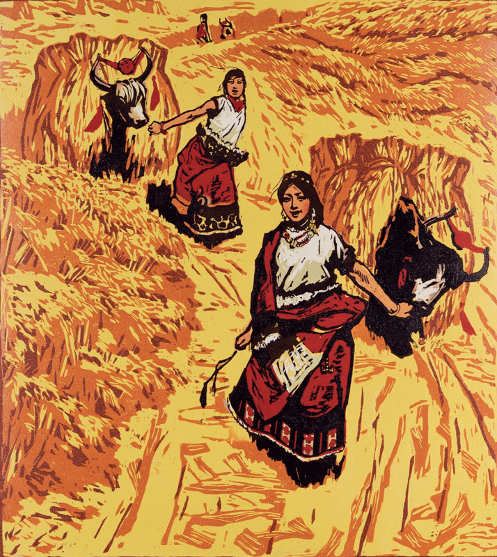初踏黄金路(版画)54.2×49cm 1963年 /李焕民 中国美术馆藏