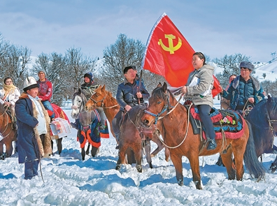 “是党的好政策让生活一天比一天好。我们要上下一条心,感党恩、听党话、跟党走!”站在国旗下,贾娜尔的宣讲格外动人,牧民们报以热烈掌声。此后,她进山宣讲更频繁了。每当看到她高举党旗、策马扬鞭的身影,牧民们便欢呼:“贾娜尔来了!”