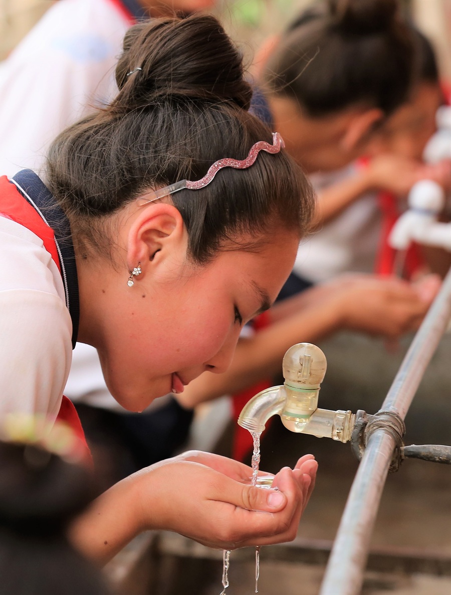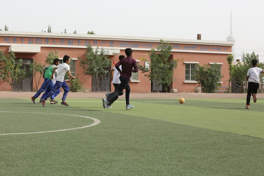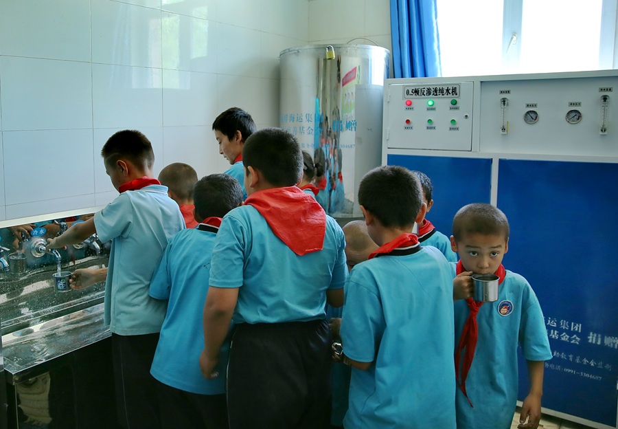 2016年以来,中远海运联合新疆资助教育基金会,在新疆喀什、吐鲁番等地学校添置净化饮水机、乒乓球台、篮球架等设施。图为净化饮水及体育设施投入前后对比。