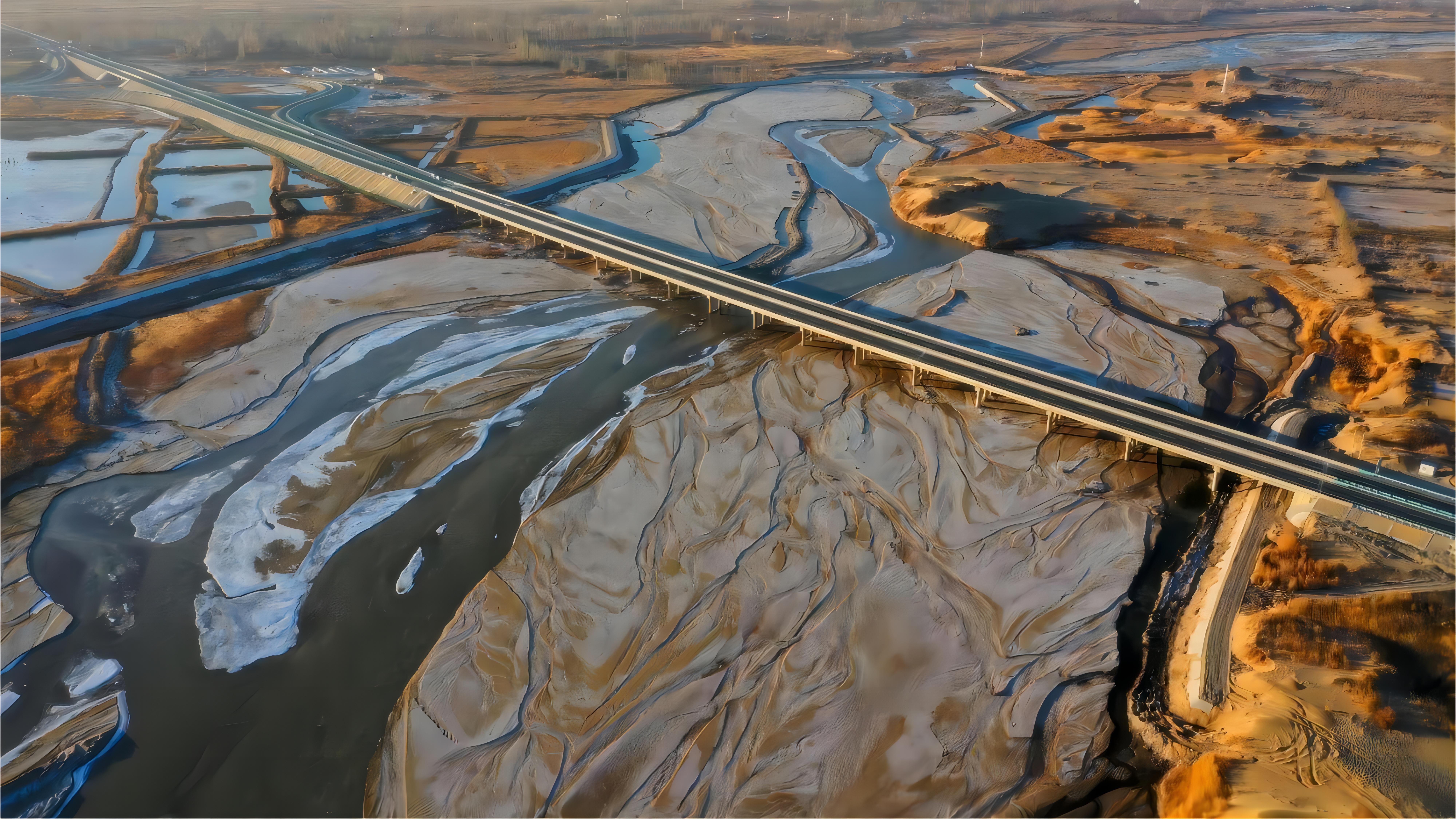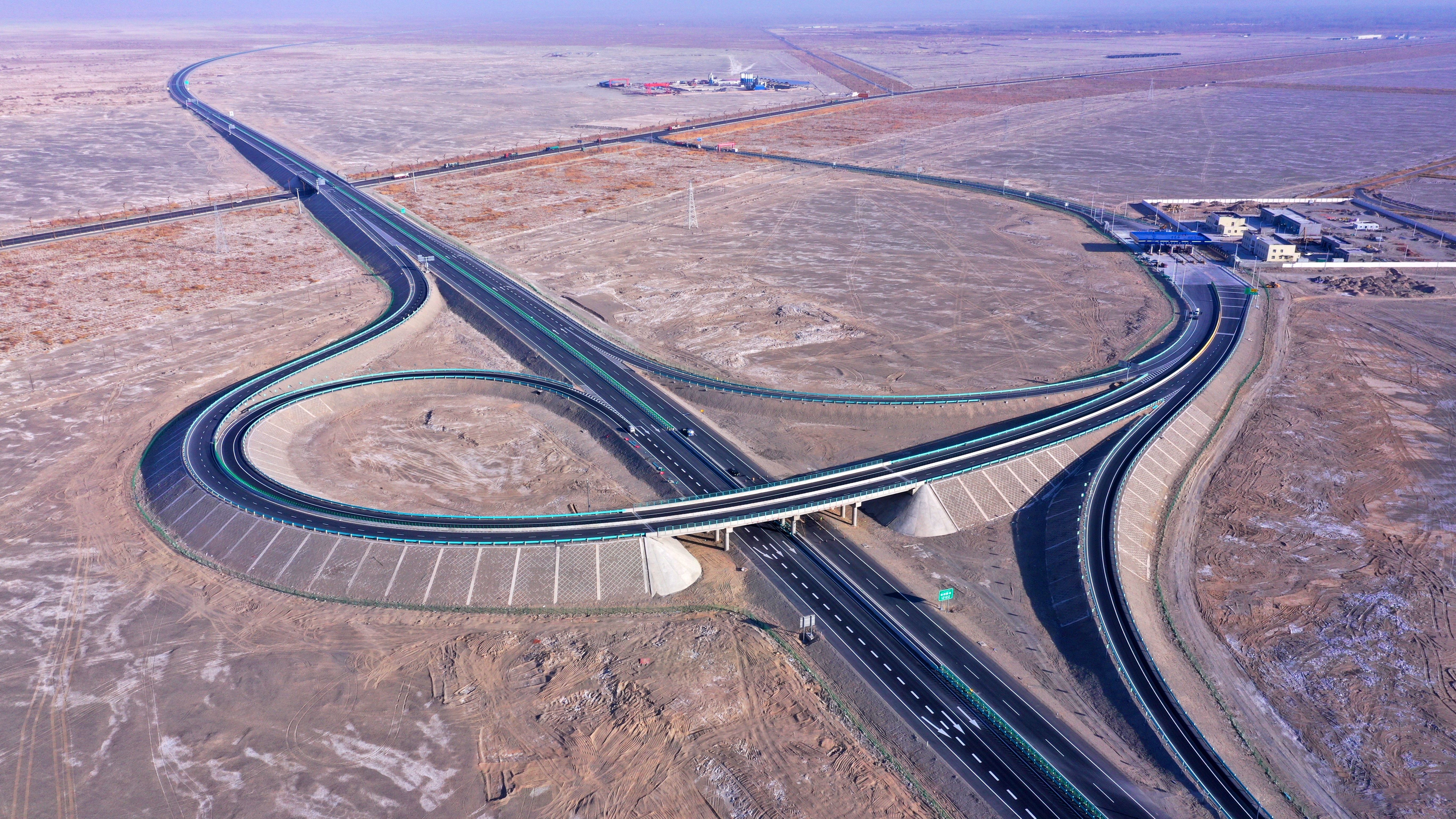 2021年,中国中铁投资建设运营的新疆若羌至民丰高速公路通车。图1为若民高速若羌西互通立交。图2为若民高速最长桥梁车尔臣河大桥。图3为若民高速阿克塔孜互通匝道桥。