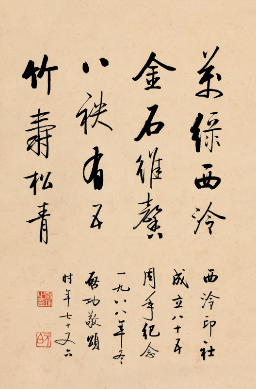 为西泠印社成立八十五周年书四言颂辞(书法)68×45cm 1988年 /启 功 西泠印社藏