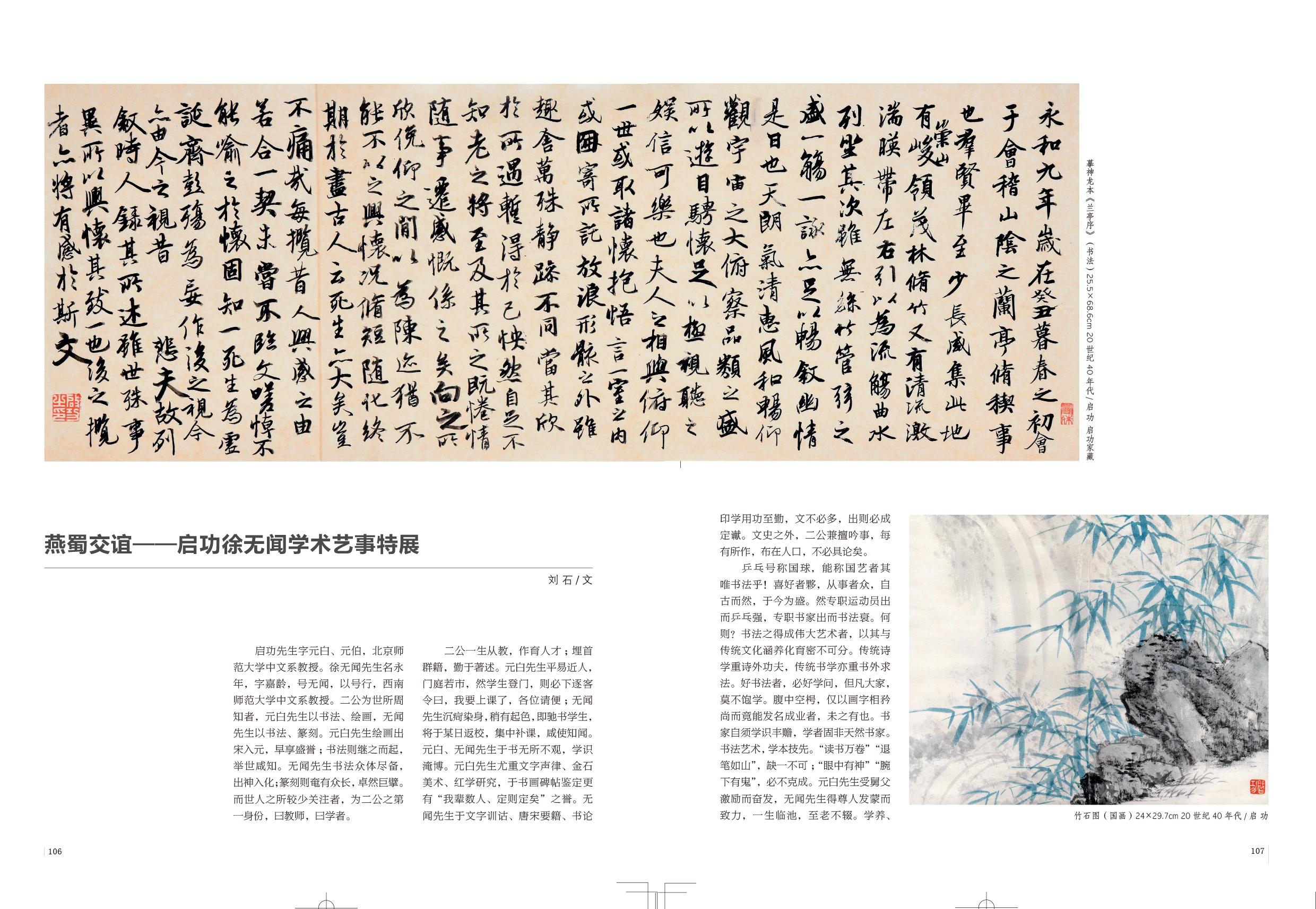 2025年8月20日至10月19日,由北京启功艺术研究会、成都徐无闻艺术研究会、清华大学艺术博物馆、清华大学人文学院中国书法与文化研修中心共同主办的“燕蜀交谊—启功、徐无闻学术艺事特展”在清华大学艺术博物馆举办。展览共展出近二百件作品,“学术”章节展示两位先生的学术成就,“艺事”章节集展现两位先生艺术作品的风采。二人平生交往虽寥寥数次,却因学术之追求相同,艺术之境界相似,而心灵相契,惺惺相惜。