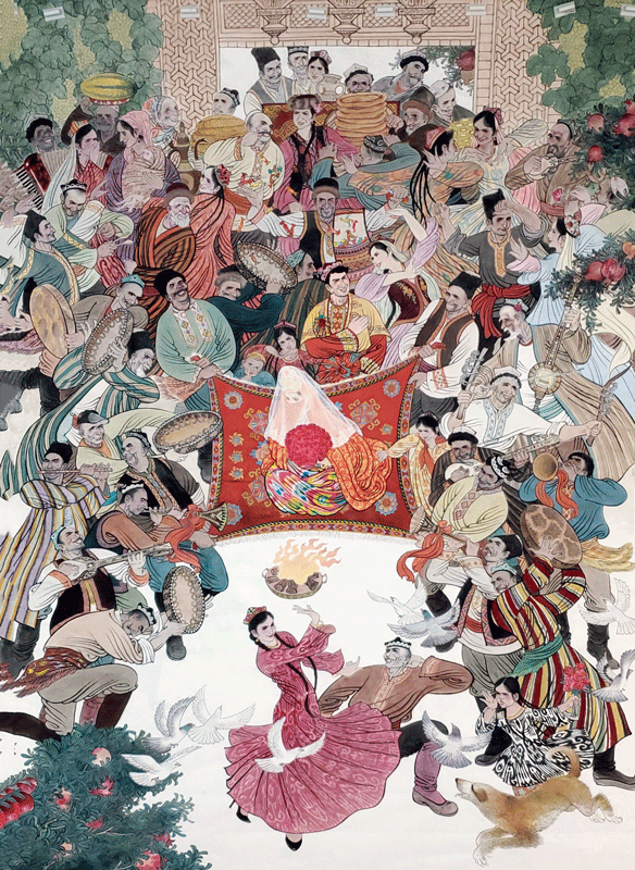 维吾尔族婚礼(国画)350×250cm /郐振明