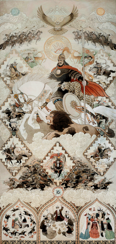 英雄史诗——玛纳斯(国画)470×290cm /郐振明