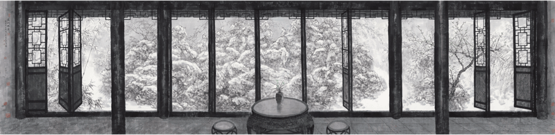 雪映雅堂(国画)192×795cm 2021年 /王明明