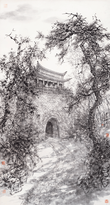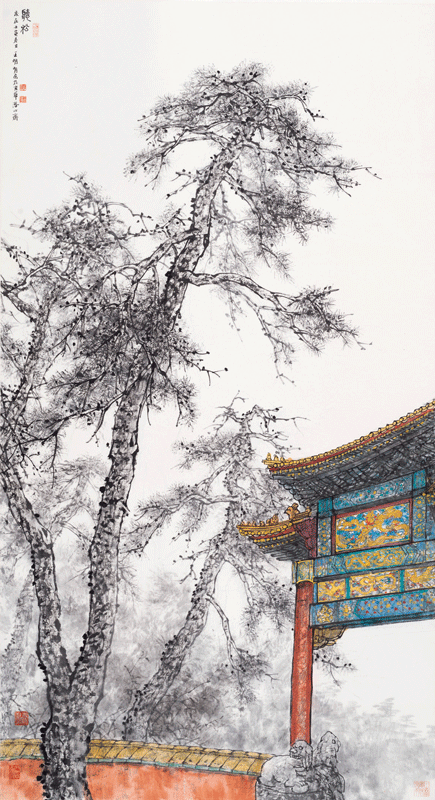二十世纪八十年代以《杜甫》等人物画震动艺坛,历时数载于2022年完成《古诗意画百开册页》,直至创作此次园林主题的作品,王明明的每一次突破,都在印证托尔斯泰对“一流艺术家”的定义:以情感的精准把控超越技法藩篱。退休后的王明明迎来了艺术生命的黄金期,“集虚寻境——王明明中国古典园林作品展”中展出的作品即是明证。现场观展的艺术爱好者及专家纷纷赞叹,“与当代画家拉开了距离”“五年完成如此体量的艺术创作,是艺术生命力的奇迹。”展厅中那幅《听松》恰是艺术家近期艺术风格的写照:松枝破云处,牌楼隐现一隅,淡墨晕染的红墙如岁月沉香,删繁就简的构图里蕴藏着返璞归真的化境。