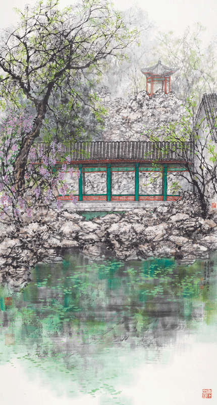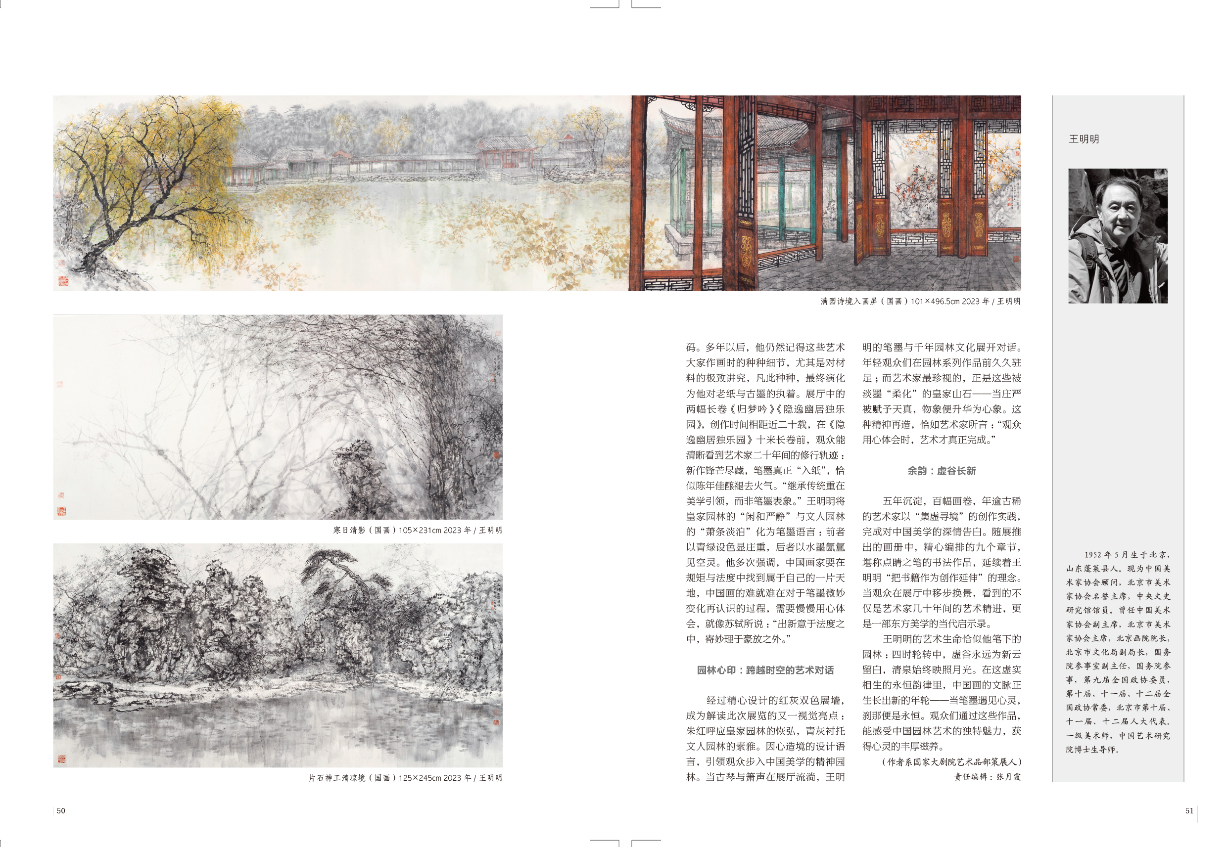 王明明的艺术生命恰似他笔下的园林:四时轮转中,虚谷永远为新云留白,清泉始终映照月光。在这虚实相生的永恒韵律里,中国画的文脉正生长出新的年轮——当笔墨遇见心灵,刹那便是永恒。观众们通过这些作品,能感受中国园林艺术的独特魅力,获得心灵的丰厚滋养。
