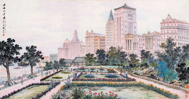 近代上海的都市化缘起于开埠。得益于连接内河航运和远洋航运的重要区位,上海成为一座“依港而兴”的工商业城市,同时也是一座华洋杂处、八面来风的移民型城市。近代中国的第一座公共园林,就是上海的外滩公园,它位于苏州河与黄浦江的交汇处,建成于1868年,从租界公园到劳动人民的公园,走过了近代中国的百年历程。许多上海画家都曾经在此写生创作,抑或登高俯视,外滩公园也成为上海城市标志性的视觉符号。