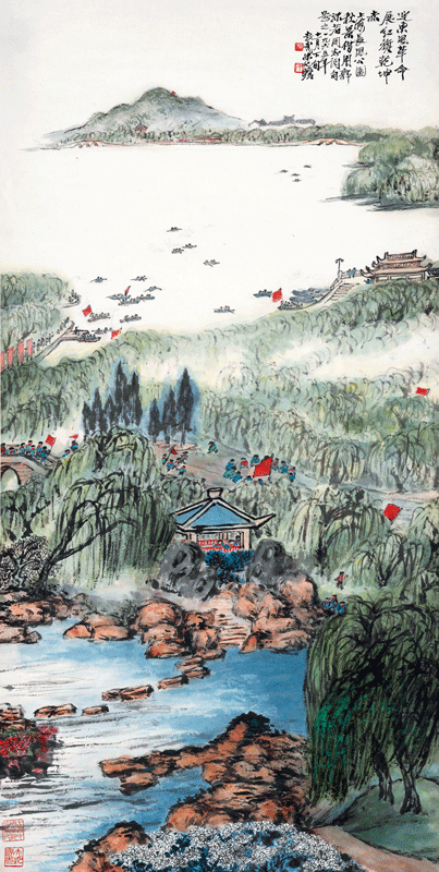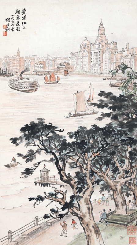 黄浦江上朝气蓬勃(国画)91×51cm 1958年 /胡伯翔