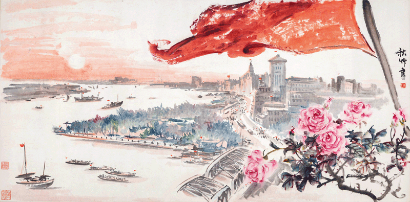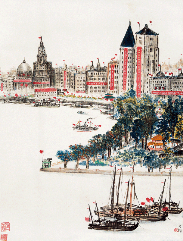 上海的早晨(国画)94×179cm 1958年 /袁松年